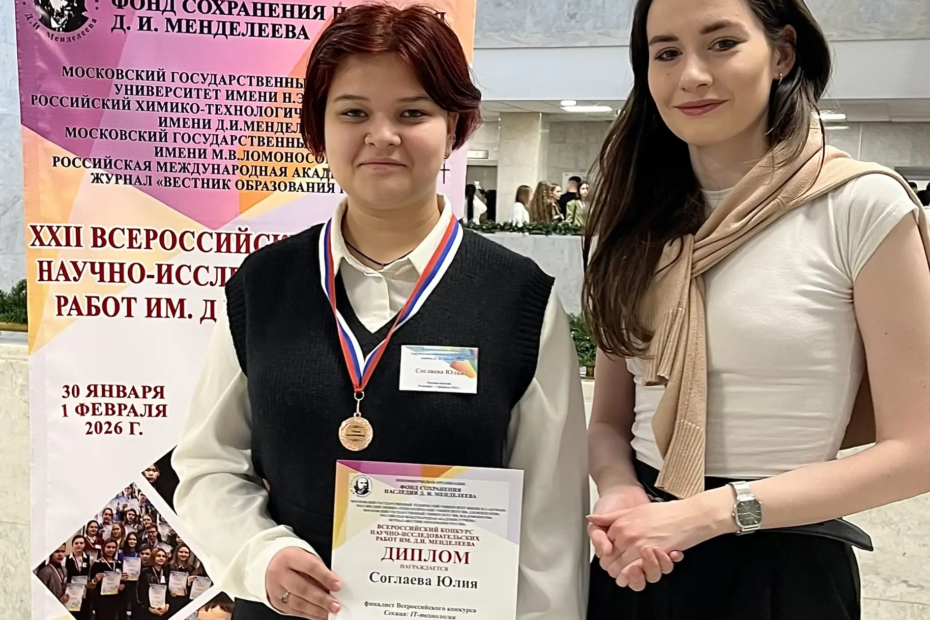 Москва, 30 января – 1 февраля 2026 г. в столице России завершился финал XXII Всероссийского конкурса научно-исследовательских работ им. Д.И. Менделеева, объединивший талантливую молодежь со всей страны. Масштабное событие, объединившее около 1900 участников из 60 регионов страны. Конкурс им. Менделеева,… Подробнее »Студентка АНПОО «СРШБ (колледж)» Соглаева Юлия представила свою научную работу на финале конкурса им. Менделеева в Москве