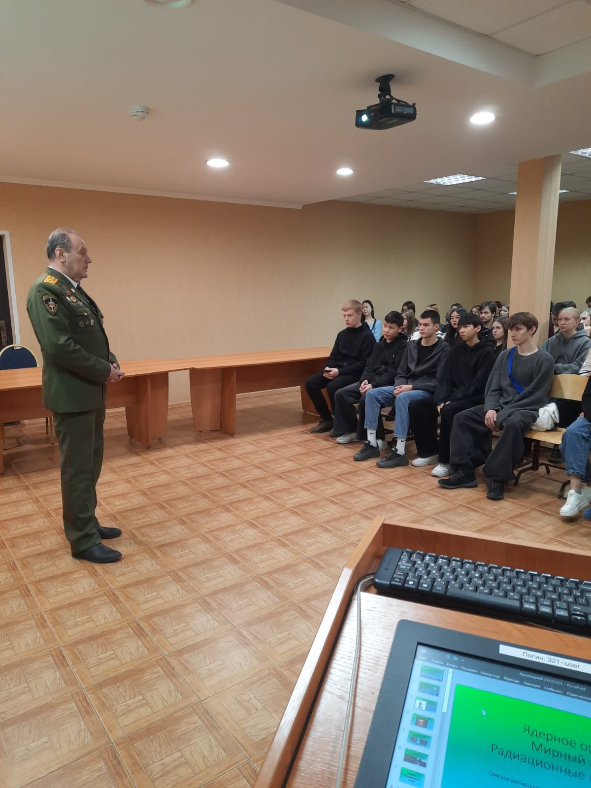 В рамках исполнения плана мероприятий «О поддержке и реализации в 2025 – 2026 годах программы «Чернобыль: Защитники Отечества», посвященной проведению 40-й годовщины аварии на Чернобыльской АЭС» в Автономной некоммерческой профессиональной образовательной организации «Сибирская региональная школа бизнеса (колледж)» 30 октября 2025 года прошла встреча с ликвидатором Чернобыльской аварии Соловьевым Юрием Михайловичем.